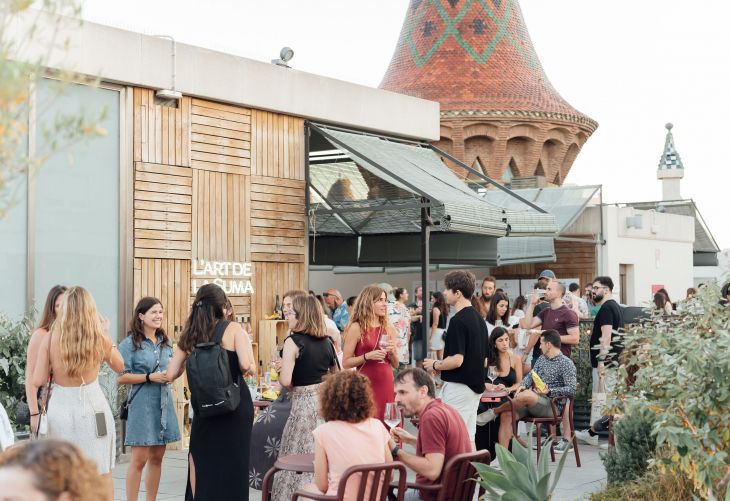 Més de 200 persones han participat aquest dimecres al vespre en el primer afterwork organitzat pel celler U MES U per maridar cultura, vi i espais singulars de Barcelona. La primera d'aquestes trobades ha omplert la terrassa de la Casa de les Punxes amb el concert de Mireia Vilaseca i la música de DJ Kiki i amb dos vins de premi, flamants guanyadors d'una medalla d'or als Premis Vinari Joves 2024, Anais Muscat i Anais Rosat, que s'han completat amb Anais Negre i Anais Xarel·lo.