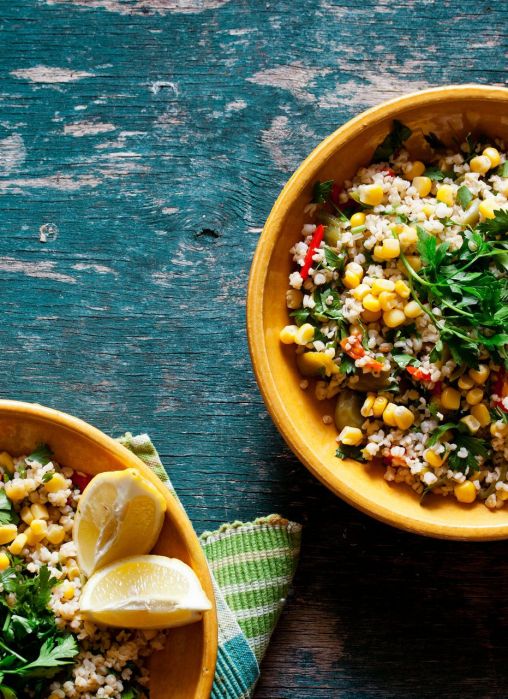 Ensalada de bulgur y maíz con hierbas frescas Compartir Twitter Whatsapp Whatsapp Telegram Telegram Facebook Tipo de plato Legumbres Tipo de dieta Sin lactosa Sin gluten Veganas Vegetarianas Esta recepa es exclusiva para subscriptores Súmate a Cuina y lee todas las recetas sin limitaciones Suscrívete Ya tienes una cuenta? Inicia sesión