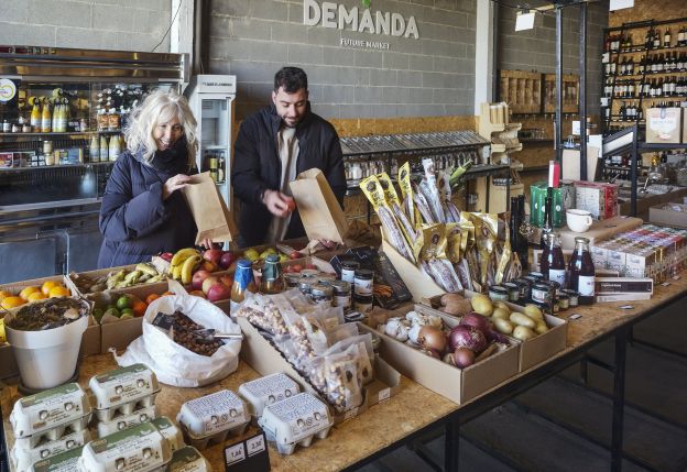 De lunes a sábado, diferentes proveedores de proximidad llenan esta gran despensa de verdura y fruta ecológica d