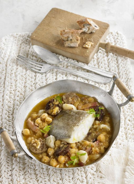 Bacalla amb cigrons i tripa de bacalla