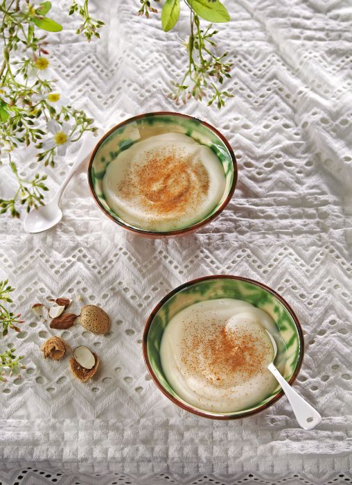- Per al menjar blanc: escalfeu la llet d’ametlles amb el sucre, la llimona i la canyella. Tapeu-la i deixeu-la reposar. Coleu-la.