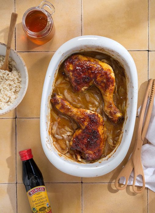 - Prepareu la marinada barrejant en un bol l'oli d'oliva verge extra Borges i el vinagre balsàmic de Mòdena Borges. Afegiu-hi la mel, la sal i el pebre i remeneu-ho tot bé.